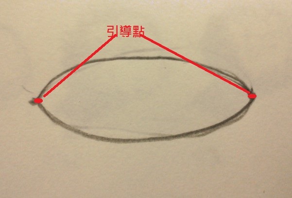 1.畫二個水平相對應的引導點,並用按透視法縮短的圓形來連結