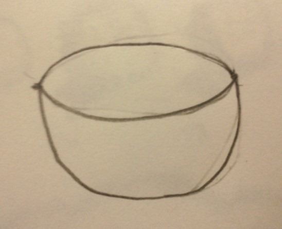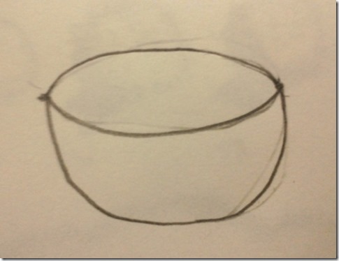 步驟1:畫一個按透視法縮短的碗,並且加上莖