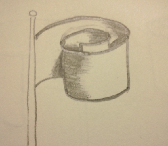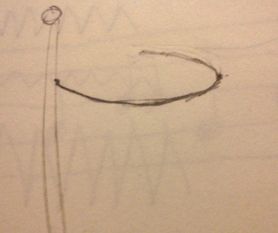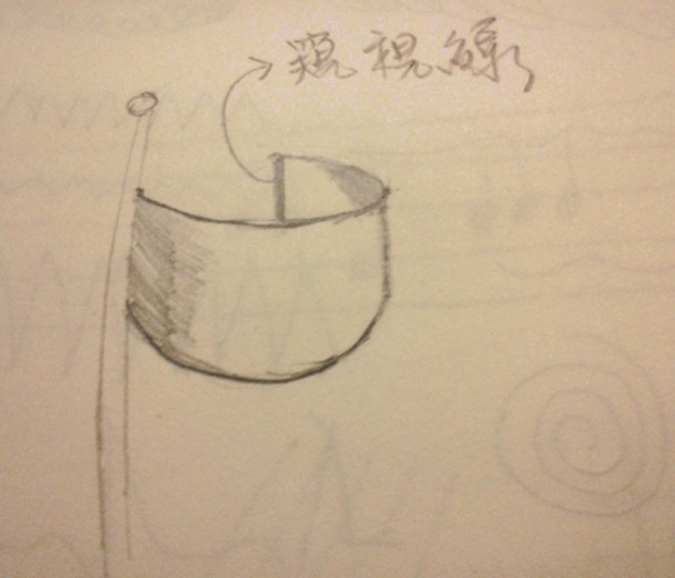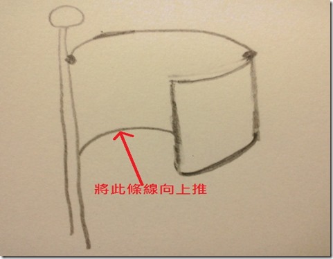 1.直接跳到畫出四分之三的按透視法縮短的圓形,但這次旗子要相反,所以