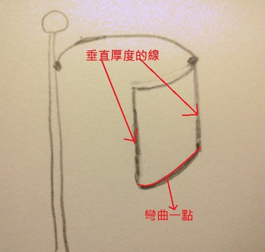 2.畫旗子的垂直厚度,並補上旗子底部邊緣