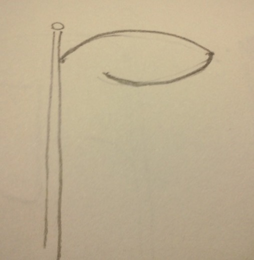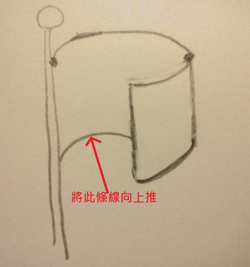 5.畫上旗子底部邊緣,切記彎曲的比上方線條還多一點,因為旗子底部在視覺上是離你較遠的