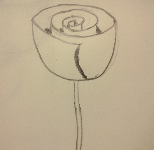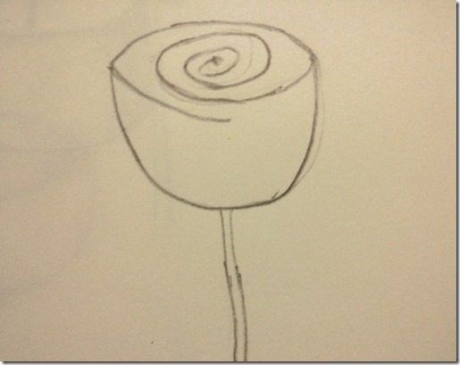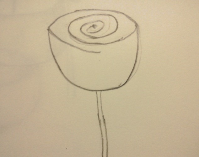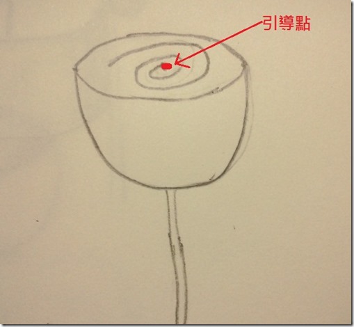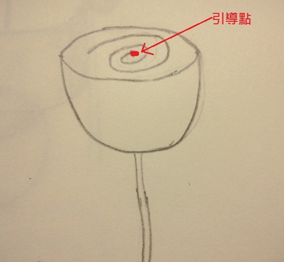 步驟2:在碗中間,畫出一個引導點,並用螺旋線條畫出一個圓形玫瑰花瓣