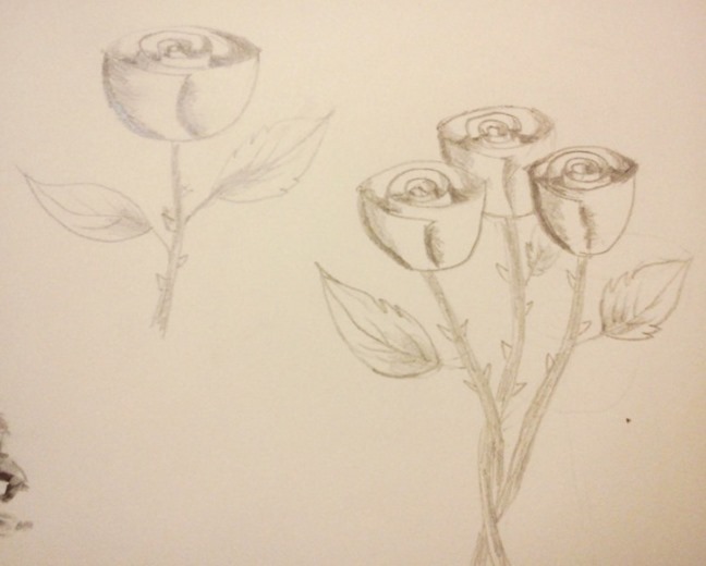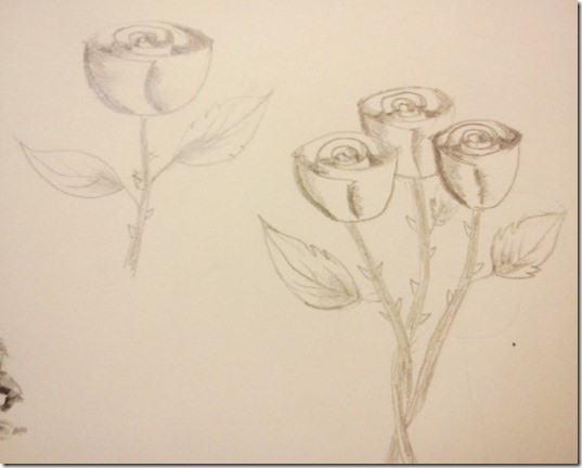 步驟5:畫下非常深非常小的隱蔽處與縫隙的陰影,注意,玫瑰花瓣邊緣也要哦~