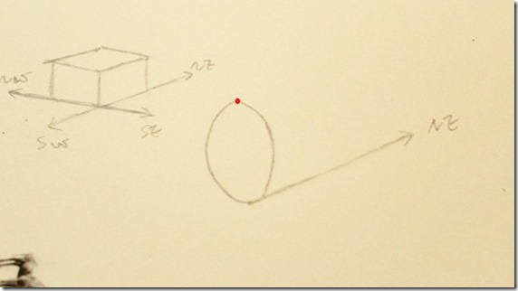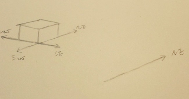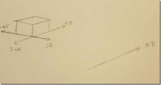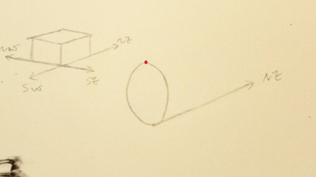 1:先畫一個「繪畫方位參考立方體」再依羅盤方位的東北向當成參考線,輕輕地畫出一條東北向的參考線