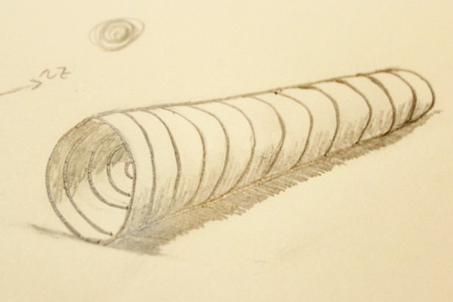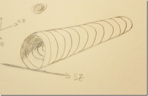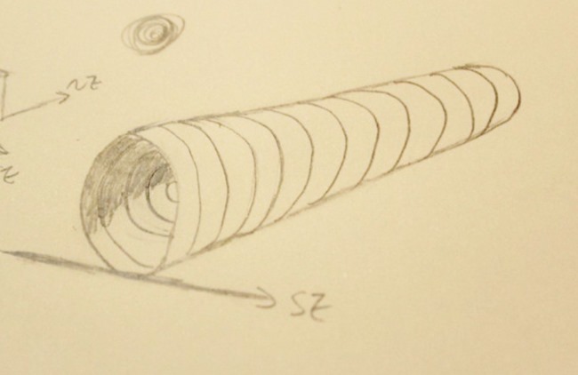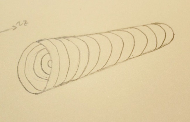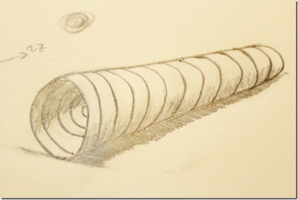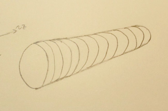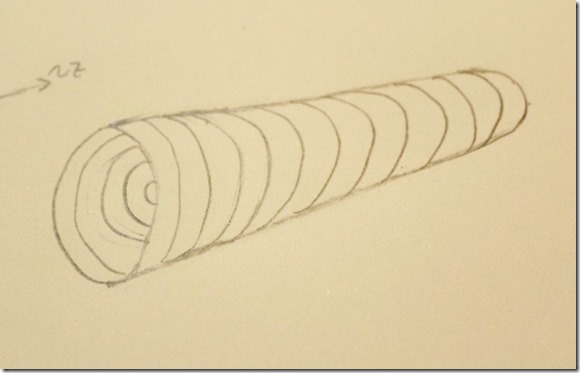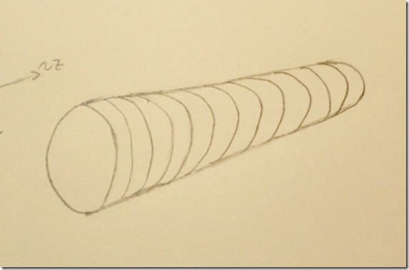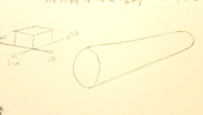 注意!線要稍微更傾斜,讓管形在從你的視線遠去時,漸減變窄