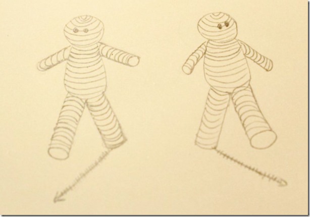 步驟7:用東南向畫出投射陰影,並用曲線的輪廓線畫出管形陰影