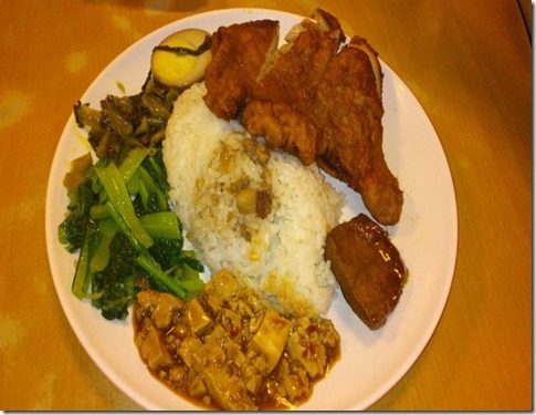 這家金雞園,招牌好像是點心類的,不過今天很沒戰鬥力,吃了幾口雞腿飯與排骨