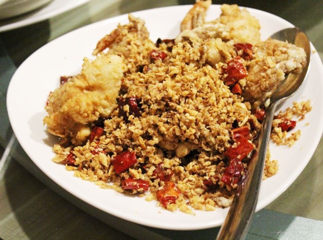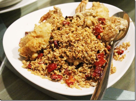 避風塘軟殼蟹,380元,蒜頭炸的稍苦,不過軟殼蟹炸的香酥,讓人食指大動