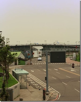 上了天橋往右看,就看到海了,前方的小漁港是長潭里漁港