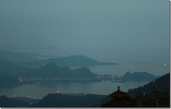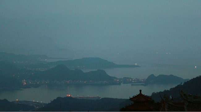 另一側的山城即是九份,飄渺的雲,似乎在訴說城市的悲情