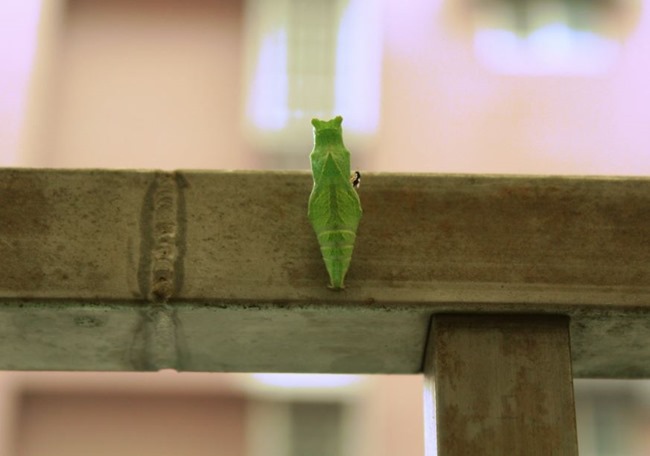 天氣暖和,無尾鳳蝶寶寶又來我家窗台留宿