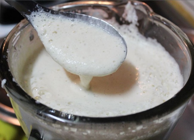 攪碎完的豆漿很濃稠,散發出陣陣豆香