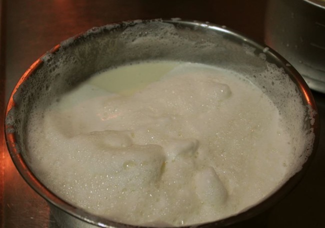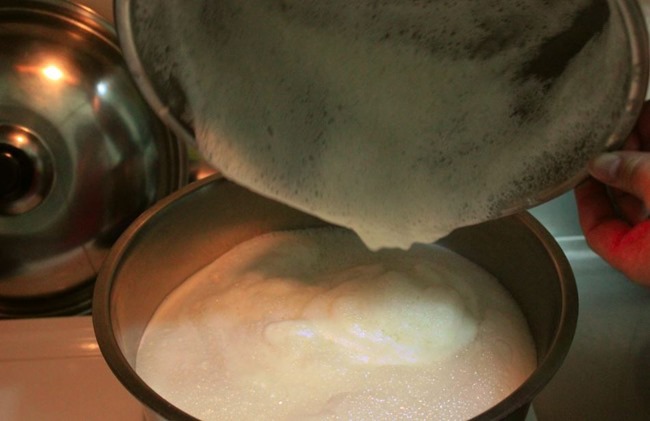 洗完的豆漿,好多泡泡,應該是不斷搓揉造成的